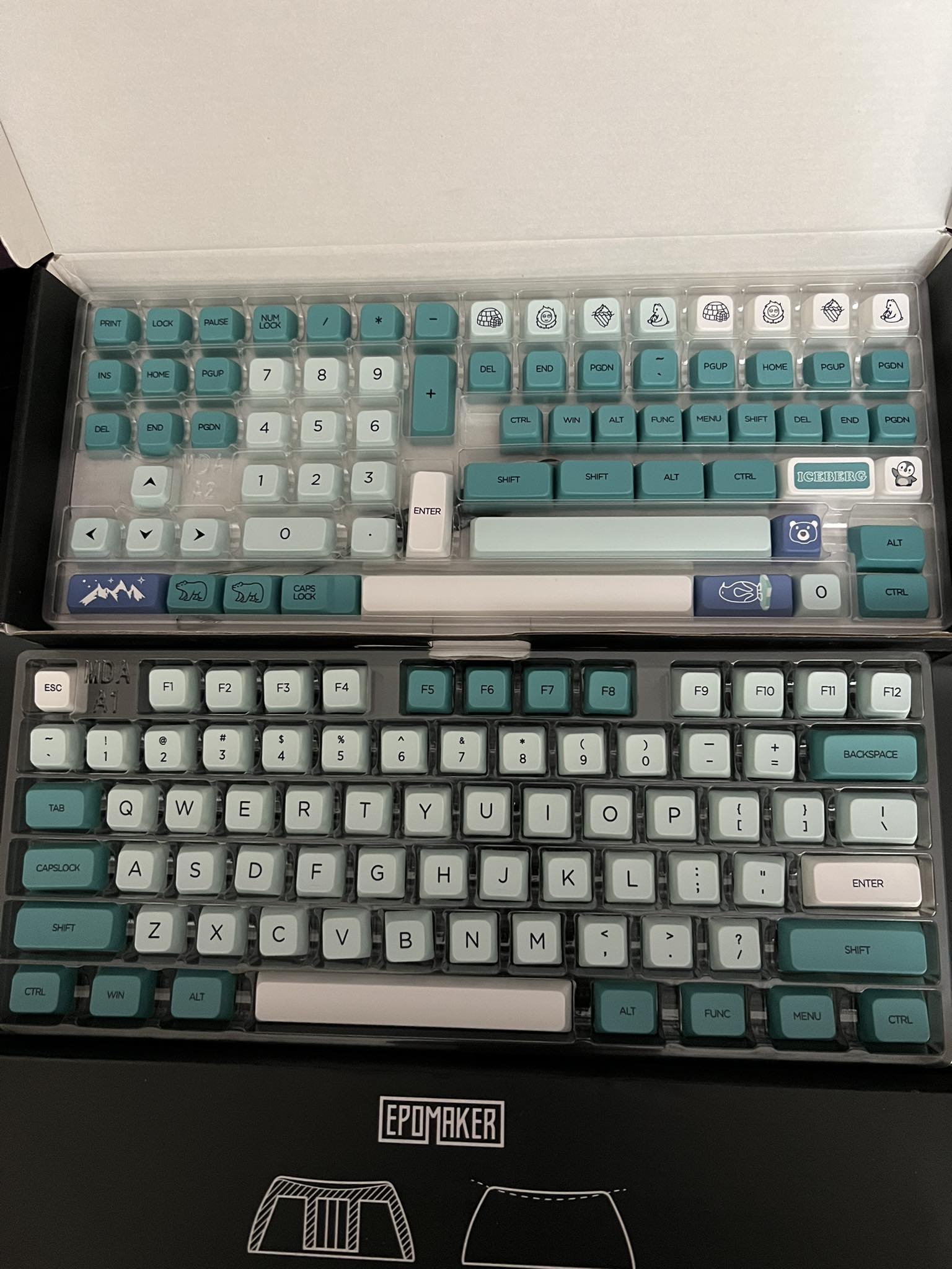 Snow and ice always appears to be beautiful yet mysterious. Dangerous as it may be, there are still strong and cute animals living in this world. The Polar Bear keycaps set replicate the icy world by white, green-blue and light mint colors to present a cold atmosphere. With drawings of polar bears, ice domes and icebergs, the keycaps present a cool yet peaceful feeling just as a magical ice world does.
