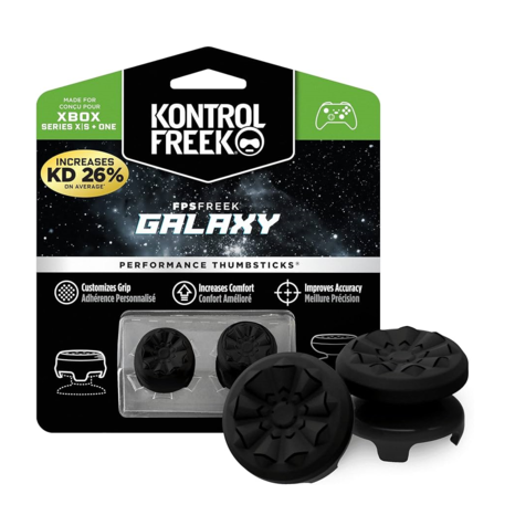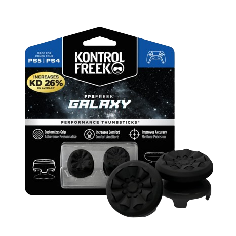 A love letter to shooters, FPS Freek® Galaxy combines one high-rise stick designed for precision aiming and one mid-rise stick for extra grip and comfort. The laser-etched design features ridge detailing to keep the thumb centered and added grip for movement in all directions.