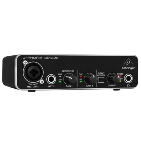 The amazing UMC22 ultra-compact 2 x 2, 48 kHz USB audio interface allows you to record the perfect vocal or instrument tracks directly to your computer, thanks the MIDAS-designed Mic Preamp with +48 Volt phantom power for condenser microphones – and studio-grade 48 kHz converter for superb sound quality. Whether you’re a singer-songwriter, producer on the go, or just need a rocksolid interface for running backing tracks at the gig, the ultra-dependable U-PHORIA UMC22 will help you shine in the digital domain.